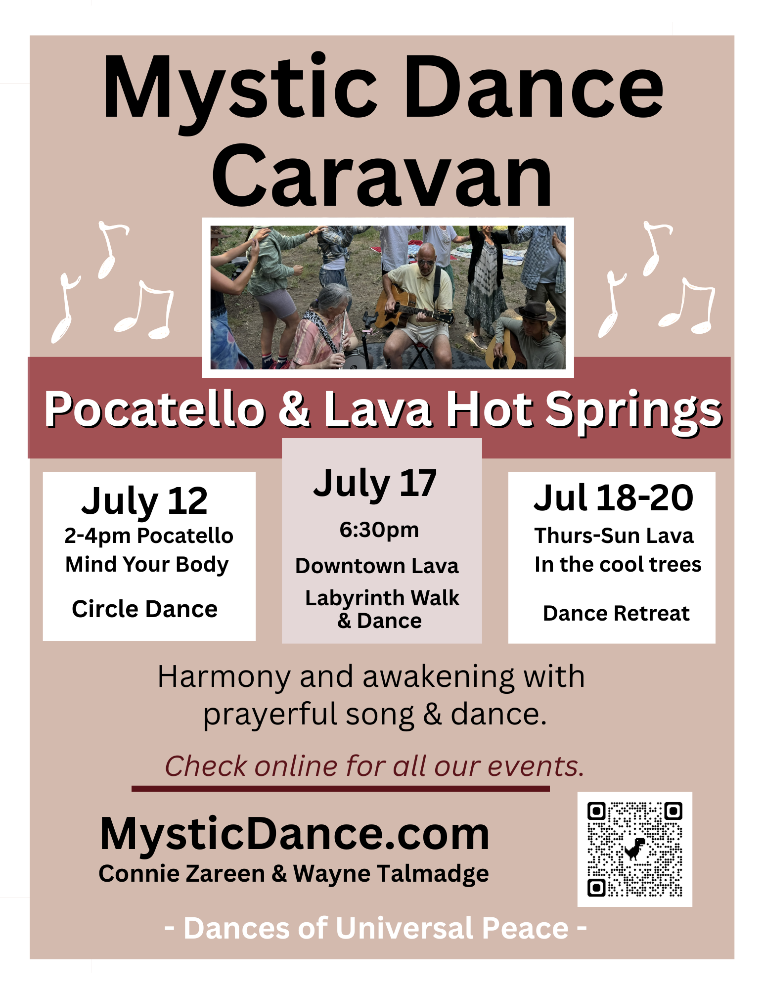 Come celebrate harmony and movement with the Dances of Universal Peace in Lava Hot Springs, Idaho. This year we are coming back to this lovely town full of hot springs and a blossoming spiritual community in southern Idaho.