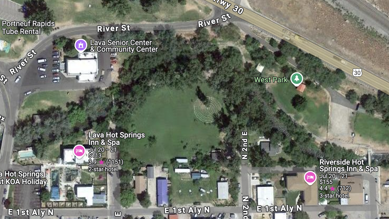You can see the labyrinth from space! Here’s a screenshot of downtown lava from Google Maps.